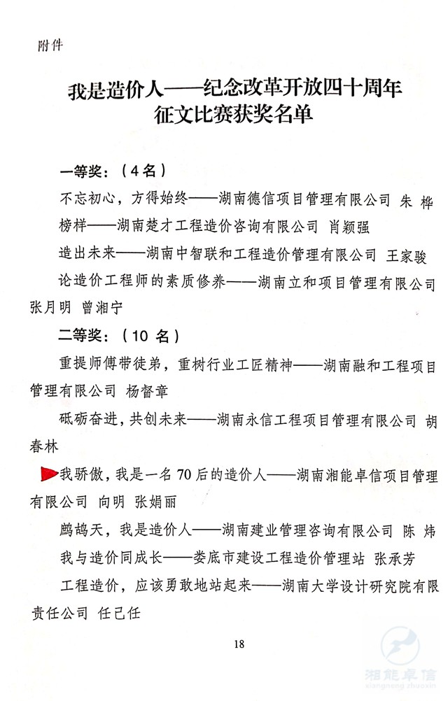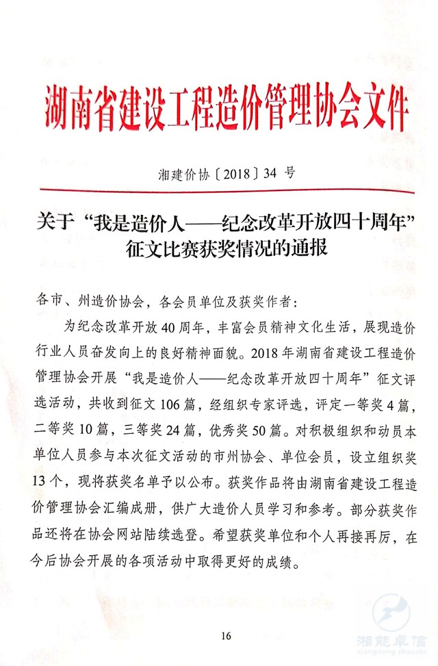 关于“我是造价人—纪念改革开放四十周年” 征文比赛获奖情况的通报