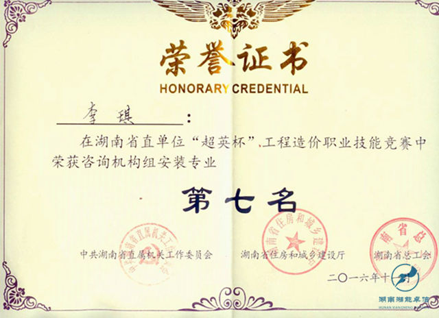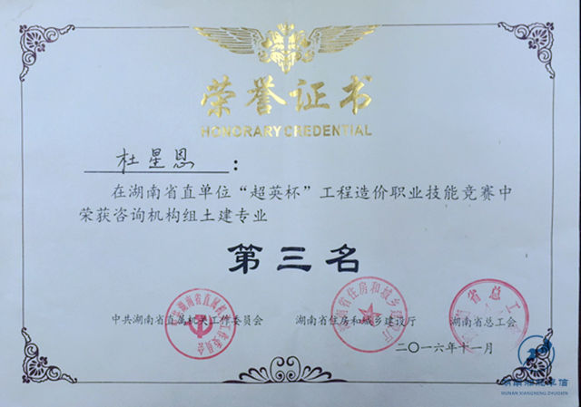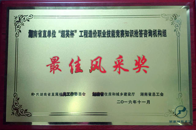 2016年11月28日, 由湖南省直属机关工作委员会、湖南省住房和城乡建设厅、湖南省总工会联合举办,湖南省建设工程造价管理协会承办的湖南省直首届“超英杯”工程造价职业技能竞赛在长沙建筑工程学校圆满落幕。